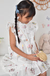 Rosalie Ivory Floral Tiered Dress is a graceful and enchanting piece crafted from breathable cotton. Designed in a knee-length, sleeveless silhouette for girls, it captures a light, dreamy elegance with delicate floral details.