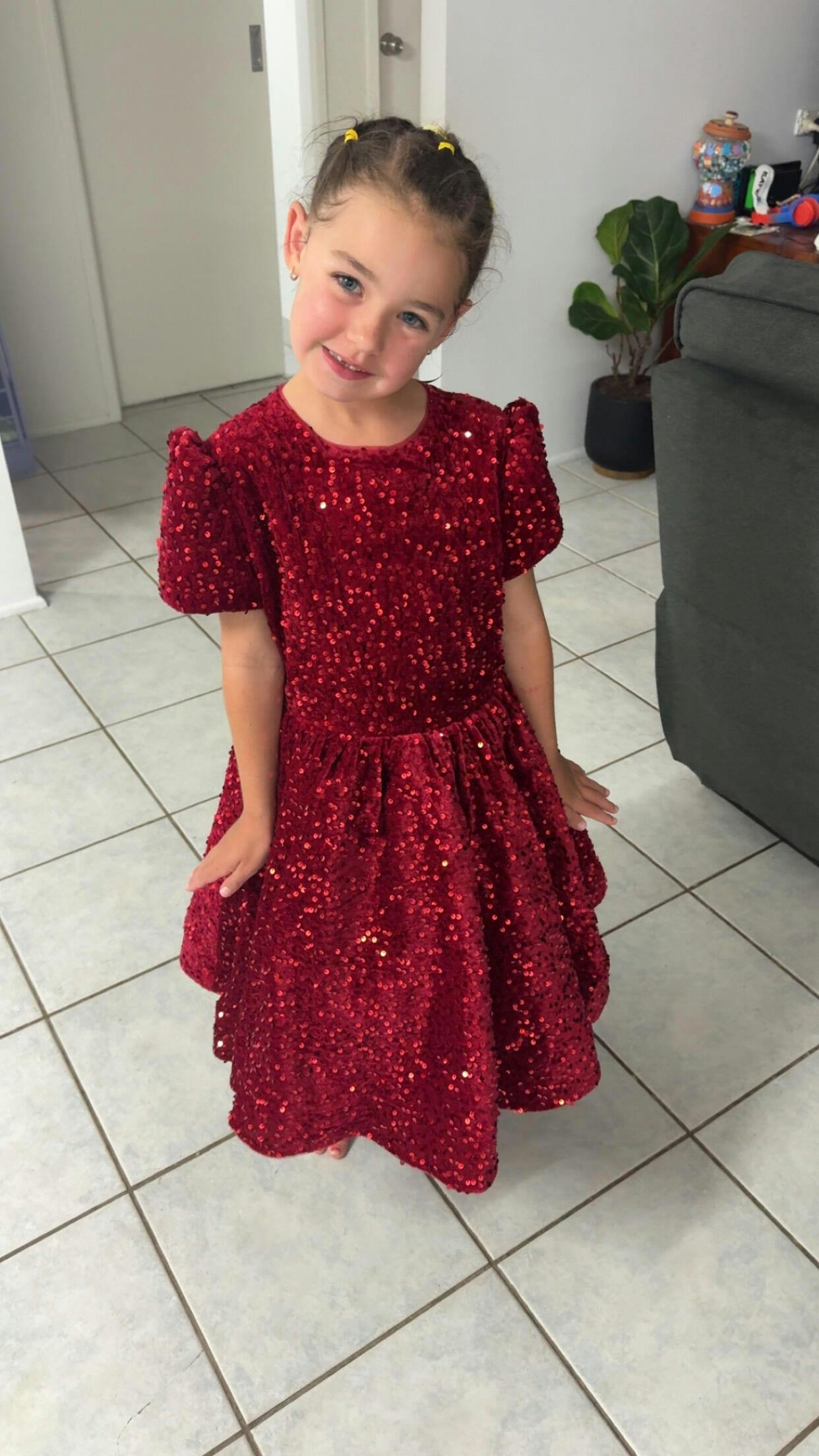 Anonymous The Scarlett Christmas Red Sequins Dress is gorgeous in person! As my daughter said I feel like a princess as she twirled. The sequin detailing is bright and festive without being scratchy, and the inside lining keeps it comfortable. The fit was true to size, and the dress feels well made. She can’t wait to wear it for her dance concert. Very happy with this purchase and would recommend it to others!